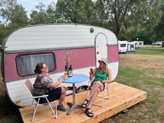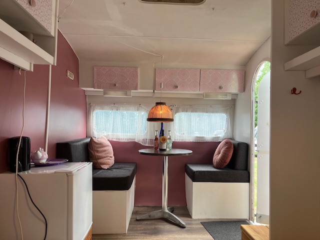 Vilma er opkaldt efter vores søde medarbejder i 2023, der ompolstrede hynderne i den lille hyggelige vogn. Her er en helt særlig atmosfære og lige det man har brug for når man er på tur. Egen lille terrasse, bålsted med de fire andre vogne og så er det en fordel hvis man ikke er længere end 186 🙂