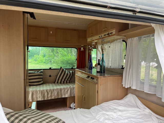 Andrea er en sød rund lille vogn, lidt større end Vilma og lidt mindre en Pam. Hun har sin egen stil, dejlig dobbeltseng og siddeområde. Andrea er opkaldt efter vores søde frivillige møbelpolster der har lagt stilen i vognen og dermed tilført det lille hjem charme og særlig hygge:-) Billeder på vej!