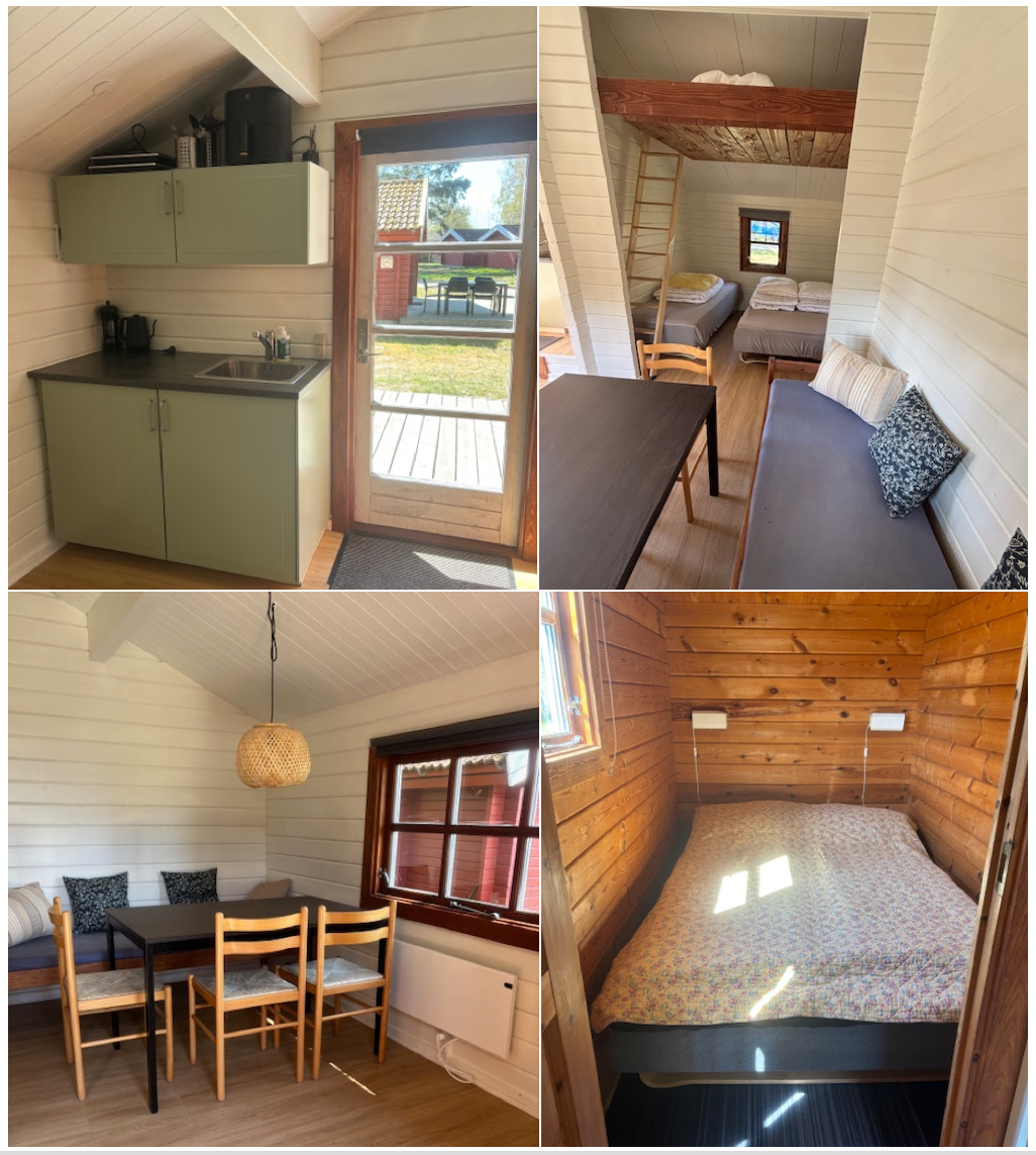 Birkehytten er ca. 19 m2 og er indrettet med et større køkkenalrum inklusiv separat soveafdeling med køjesenge og derudover et mindre soveværelse med en lille dobbeltseng. Dyner og puder til alle. Sengelinned kan tilkøbes. Køkkenenheden består af bord, to kogeplader, vask med koldt og varmt vand i hanen, et skab og et lille køleskab. Hytten er udrustet enkelt med kaffemaskine, elkoger, og et mindre sortiment af køkkenudstyr og service. I forlængelse af køkkenenheden finder I plads til seks ved spisebordet. Hytten er el-opvarmet. Der er kort afstand til hovedbygningen med badefaciliteter og nem adgang til både café, fælles bålplads og vores cozy hængekøjeområde.